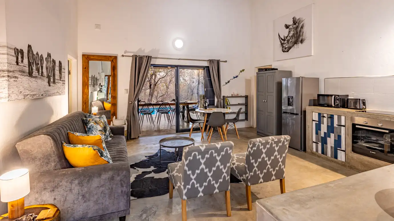 Adjacent to the main house, our sparkling swimming pool offers the ideal spot to cool off and unwind. Bask in the sunshine and take in the beautiful South African Bush while enjoying a refreshing swim.